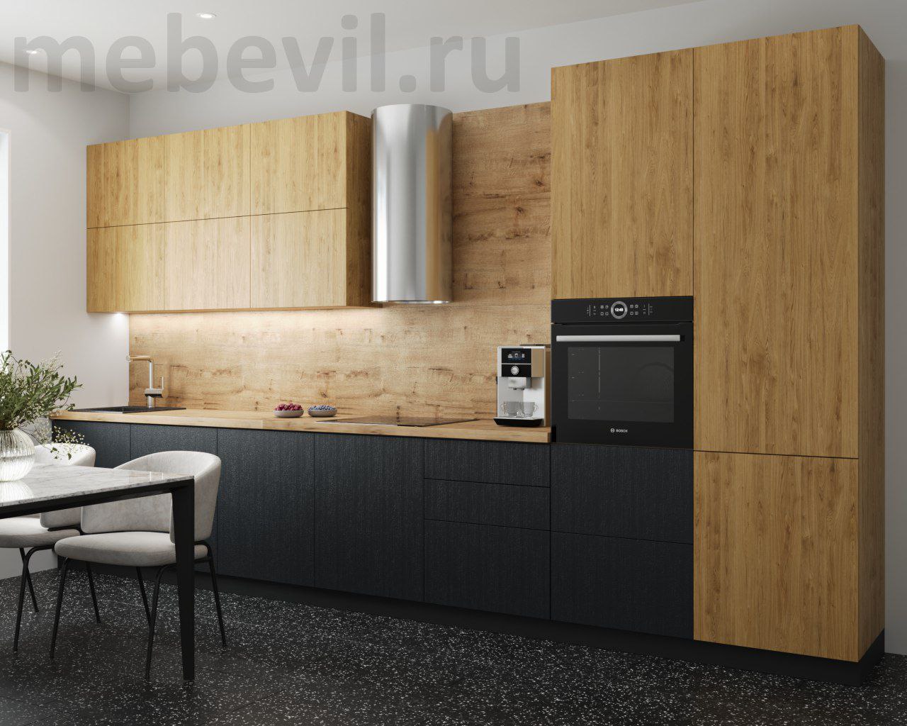 Кухонный гарнитур на заказ от производителя в Москве. Длина 4200 мм. Изменение размеров возможно. Корпус и фасады ЛДСП Egger Фурнитура AQ ( гарантия 10 лет) Столешница пластиковая влагостойкая. Сушка в комплекте. Ручки в комплекте. Срок изготовления 14-21 рабочий день. Цена за изделие