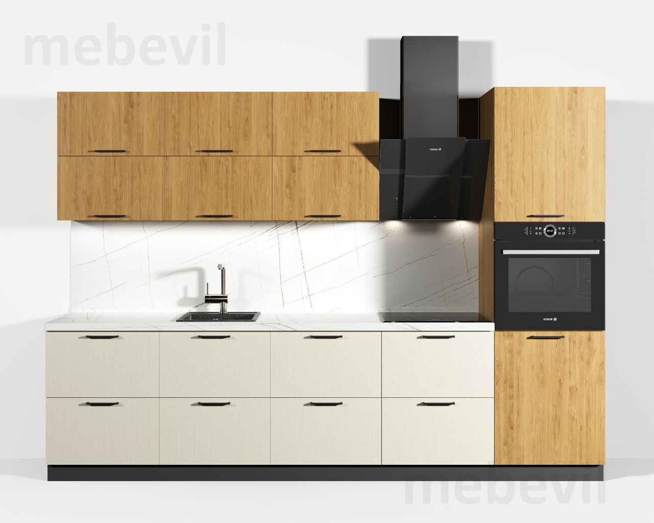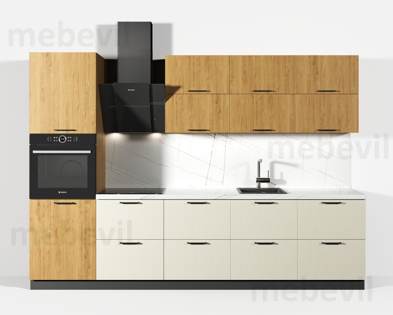 Кухонный гарнитур на заказ от производителя в Москве. Длина 300 мм. Изменение размеров возможно. Корпус и фасады ЛДСП Egger Фурнитура AQ ( гарантия 10 лет) Столешница пластиковая влагостойкая. Сушка в комплекте. Ручки в комплекте. Срок изготовления 14-21 рабочий день..