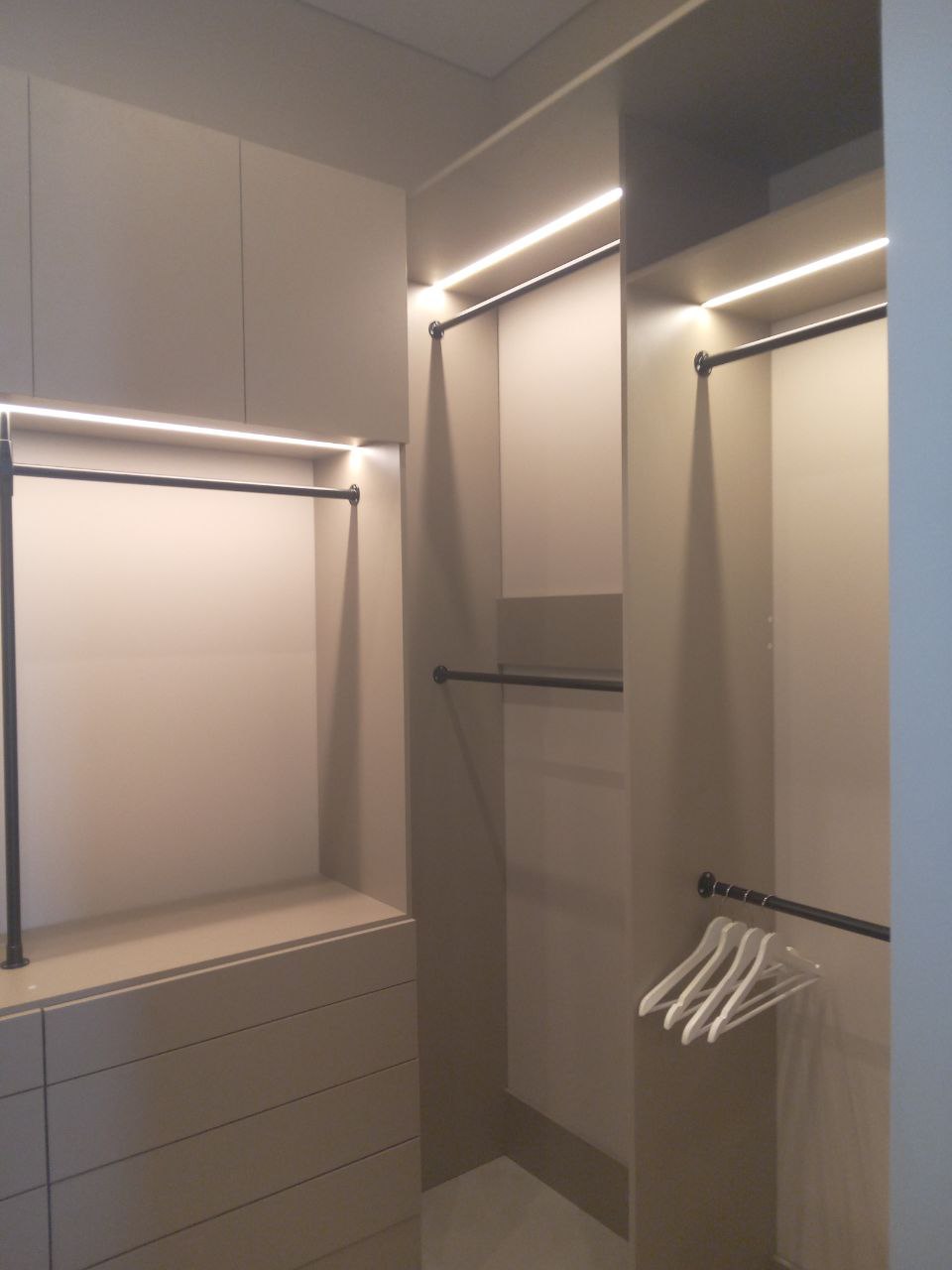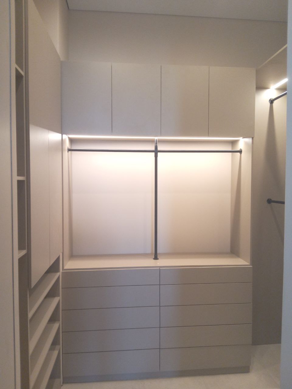 Мебель для гардеробной комнаты на заказ в Москве. Корпус мебели и фасады изготовлены из ЛДСП Egger. Направляющие ящиков фирмы Hettich (Push to open с доводчиком), петли фирмы Hettich с доводчиком. Подсветка LED ( врезная). Срок изготовления 14-21 рабочий день.