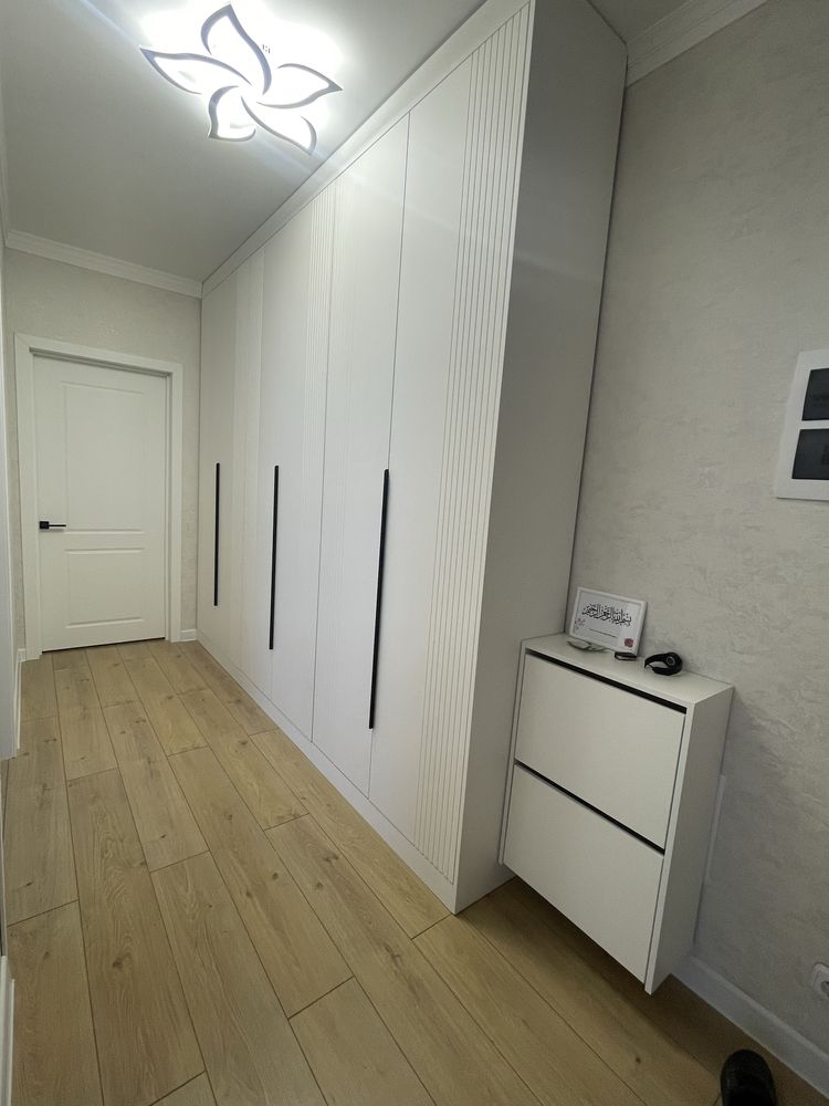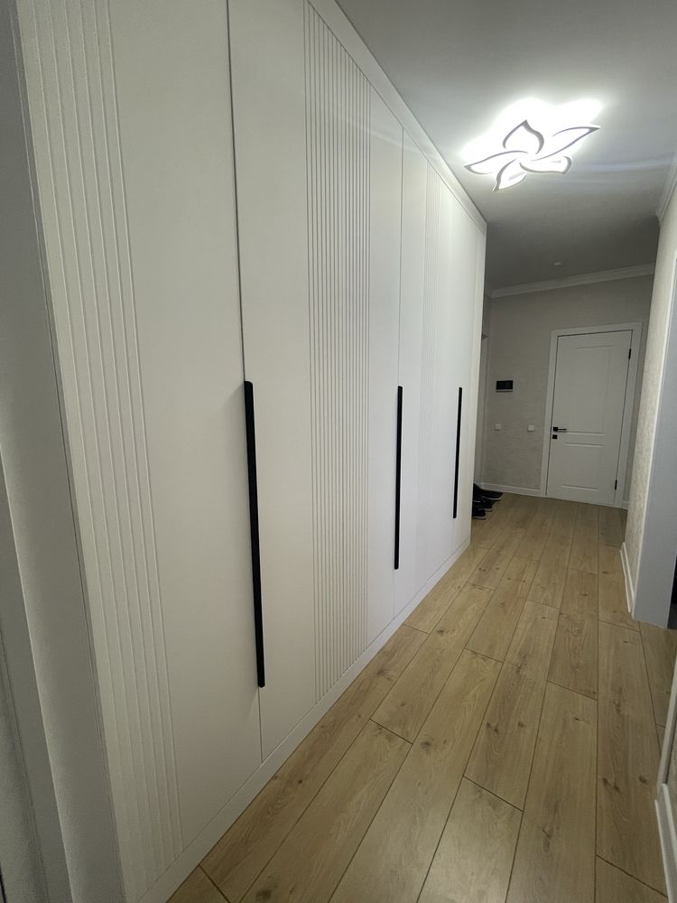 Шкаф в прихожую на заказ в Москве. Длина 3400 мм,высота 2750,ширина 520 мм Фасады МДФ в плёнке ПВХ ( с фрезеровкой) . Корпус ЛДСП Egger. Фурнитура AQ ( гарантия 10 лет) Срок изготовления 14-21 рабочих день. Стоимость - 165 240 рублей ( изделие).