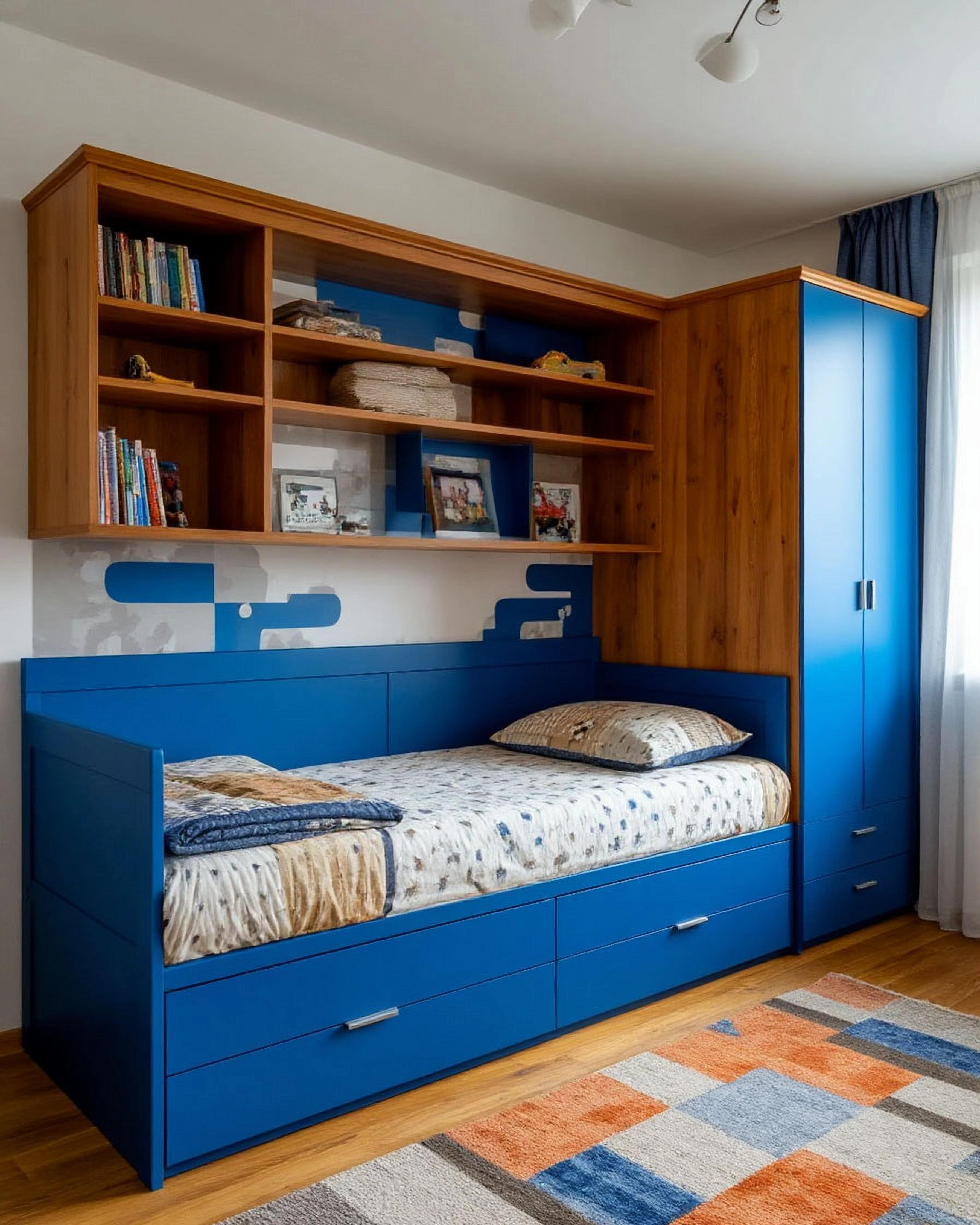 Коллекция "Морской простор" вдохновлена бескрайними просторами океана и его спокойствием. В дизайне преобладают оттенки синего и голубого, которые создают атмосферу свежести и умиротворения. Деревянные элементы мебели добавляют теплоты и естественности, напоминая о деревянных кораблях и причалах. Эта коллекция идеально подходит для мальчика, который мечтает о путешествиях и приключениях, и создает пространство, где он может отдохнуть и зарядиться энергией для новых свершений. Возможное исполнение фасадов: ЛДСП Egger, МДФ в плёнке ПВХ, МДФ в эмали. Срок изготовления 14-30 рабочих дней. Стоимость от 88 000 рублей.