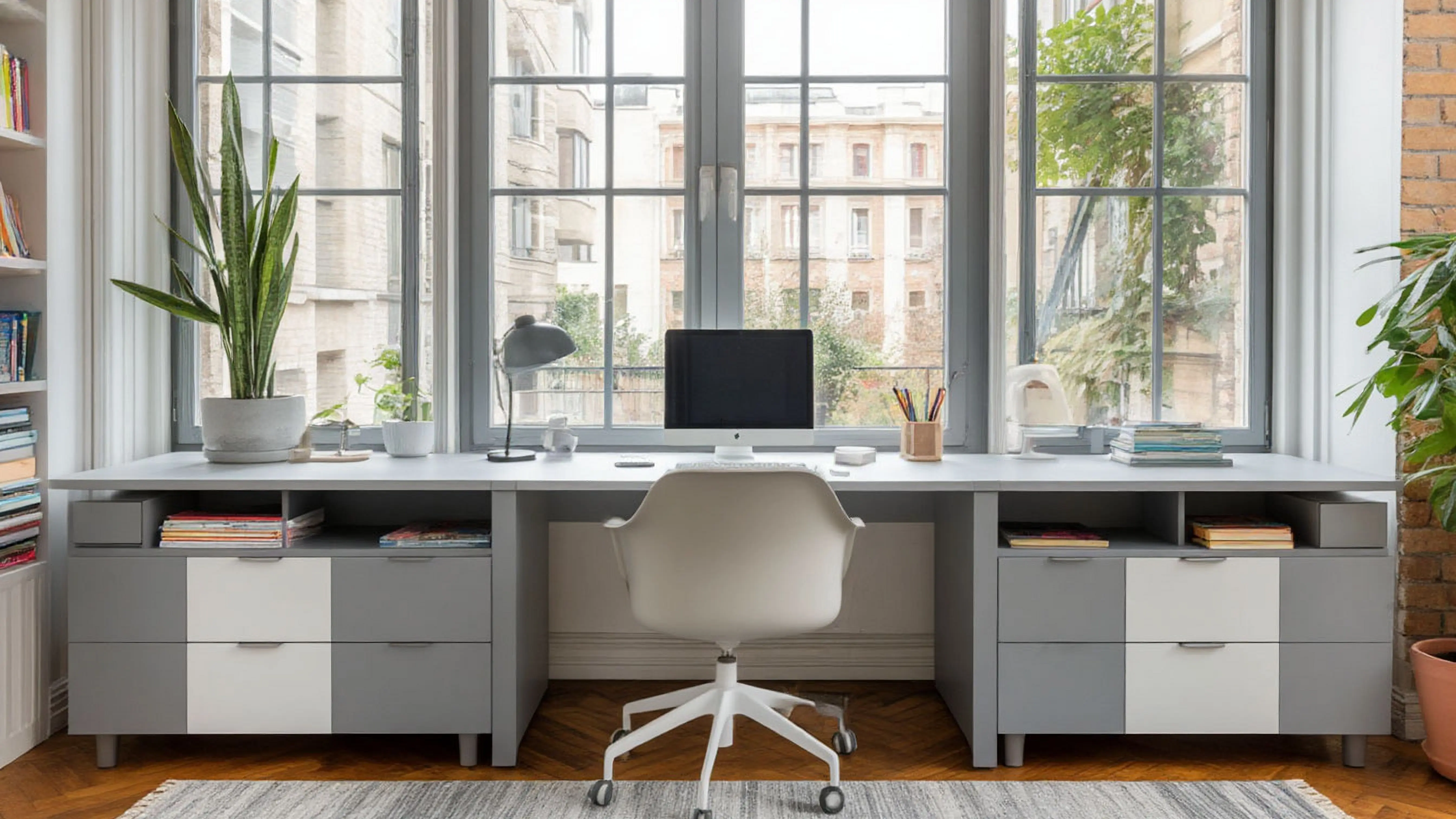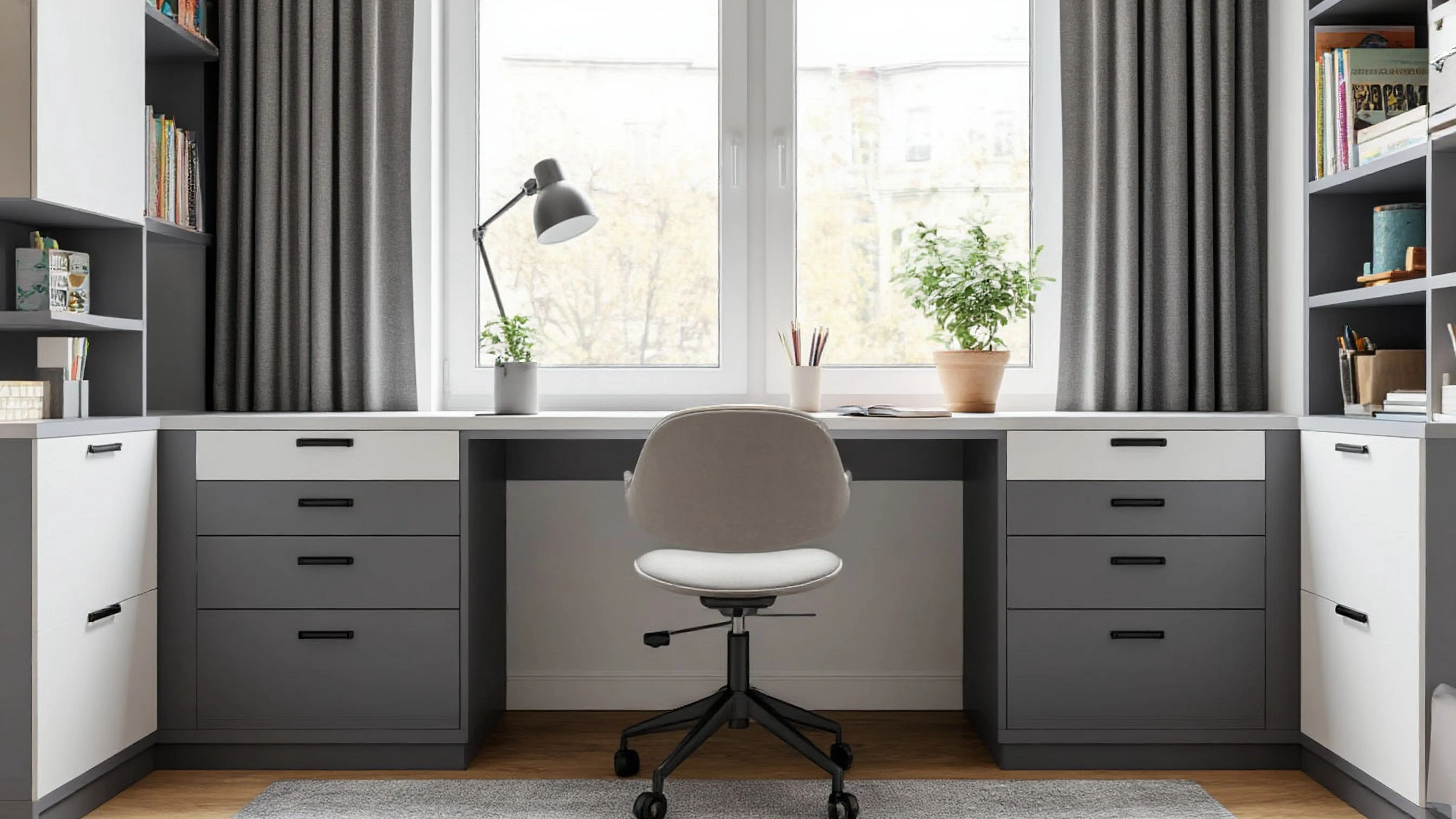 Мебель выполнена из высококачественных материалов и имеет элегантный дизайн. Она включает в себя письменный стол, шкафы,тумбы. пеналы.Все элементы мебели имеют гладкие поверхности и минималистичный дизайн, что позволяет им легко вписываться в любой интерьер. Варианты исполнения фасадов: ЛДСп Egger, МДФ в плёнке ПВХ, МДФ в эмали. Срок изготовления 14-30 рабочих дней. Стоимость комплекта от 80000 рублей.