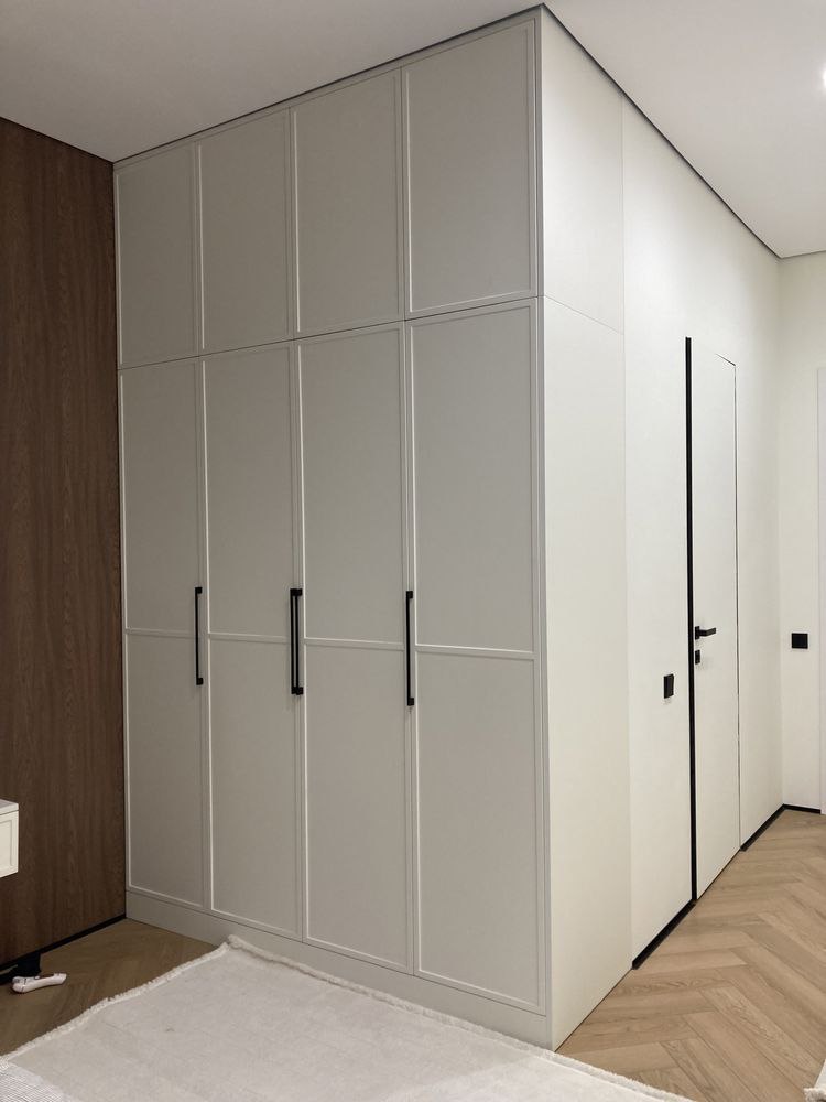 Шкаф в прихожую на заказ в Москве. Длина 2000 мм,высота 2680,ширина 520 мм Фасады МДФ в плёнке ПВХ ( с фрезеровкой) . Корпус ЛДСП Egger. Фурнитура AQ ( гарантия 10 лет) Срок изготовления 14-21 рабочих день. Стоимость - 121 300 рублей ( изделие).
